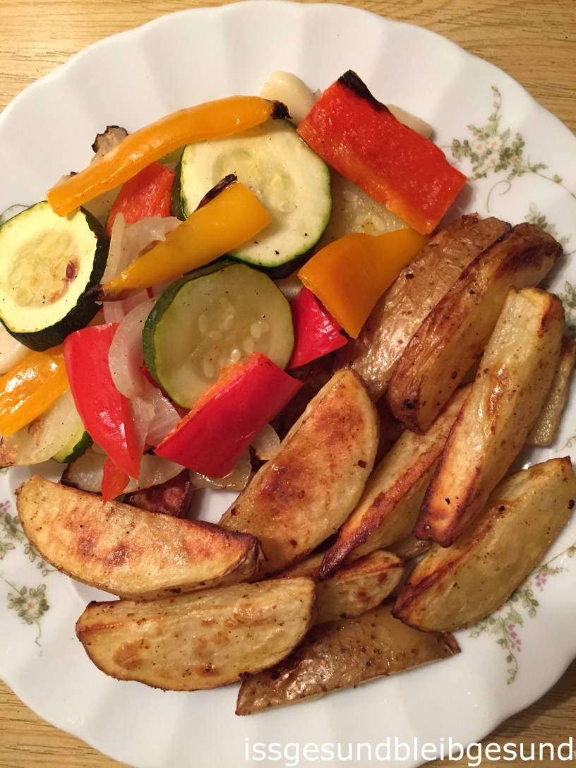 Auf dem Weg zur Sommerfigur unser heutiges Abendessen einfach und schnell nach dem Büro – schmeckt der ganzen Familie – Knusperkartoffel mit Ofengemüse