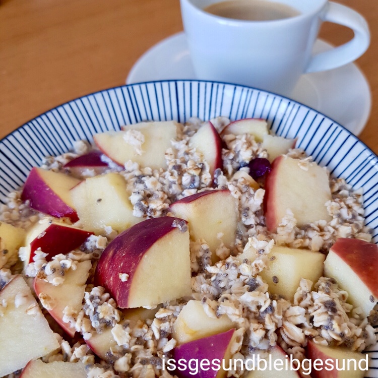 In der Zwischenzeit dein Lieblingstopping (bei mir war es heute ein Apfel) klein schneiden und zum Haferbrei geben.