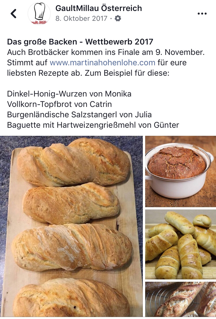 Dinkel-Honig-Wurzen ins Finale beim GaultMillau Österreich „Das große Backen“ geschafft 👍