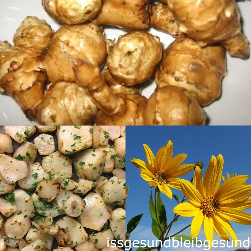 So schön blüht Topinambur 🙂 haben heute unseren 🍁Garten🍂winterfest gemacht und die ersten Knollen geerntet – so gesund, voll mit Ballaststoffen, Vitaminen und Mineralstoffen – gebraten und mit Petersilie verfeinert 😋