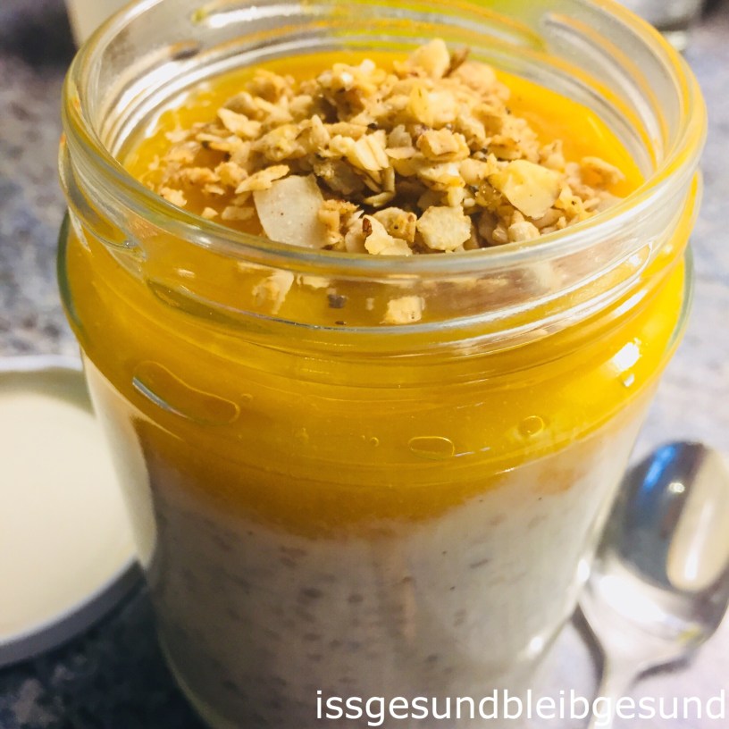 Bin heute mit 😋Chia-Vanille-Pudding + Mango-Granola-Topping 😋 gestartet