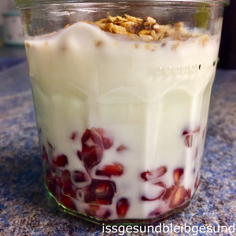 Es bleibt sommerlich ☀️ darum gab es heute für einen frischen Start in den Tag ein leckeres To go-Frühstück mit Granatapfelkernen.