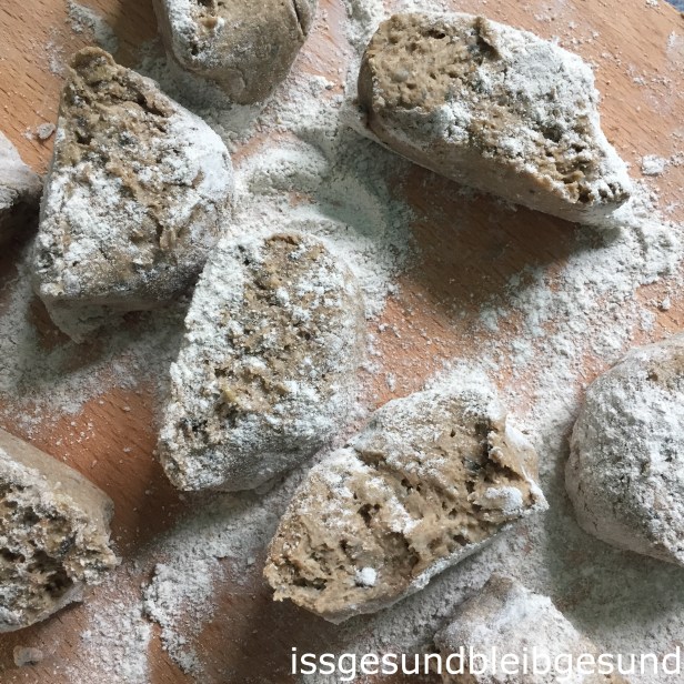 Frisch vom Urlaub aus Italien 🇮🇹 zurückgekommen musste ich spätabends feststellen, dass wir nicht einmal mehr Dinkel-Vollkornmehl eingelagert hatten um Brot für das Frühstück zu backen – zuerst große Krise – hab dann aber doch noch 1/2 kg Roggen-Vollkornmehl, Trockengerm / Hefe, Sonnenblumenkerne und einen Rest geschroteter Kürbiskerne im Vorratsschrank entdeckt. Dasselbe traurige Bild im Eiskasten – außer Mineralwasser, ein Sojajoghurt natur, veganem Aufstrich und Ingwer nichts.