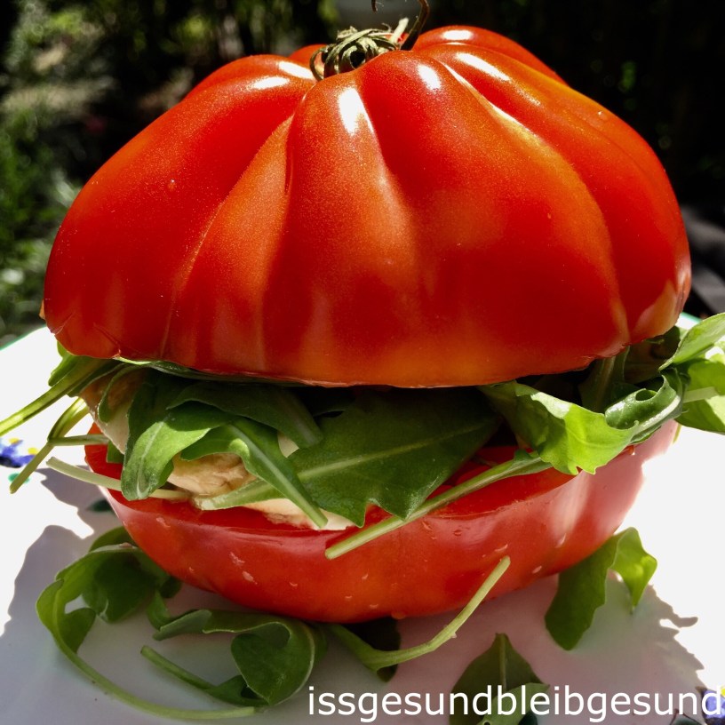 Buh, die Hitze nimmt kein Ende ☀️💦 Hatte keine Lust zu kochen aber trotzdem etwas Leckeres gezaubert 😋 Die Küche bleibt kalt und es gibt ein schnellles Mittagessen. Der Ochsenherz-Paradeiser-Burger erfrischt und ist ruck zuck fertig.