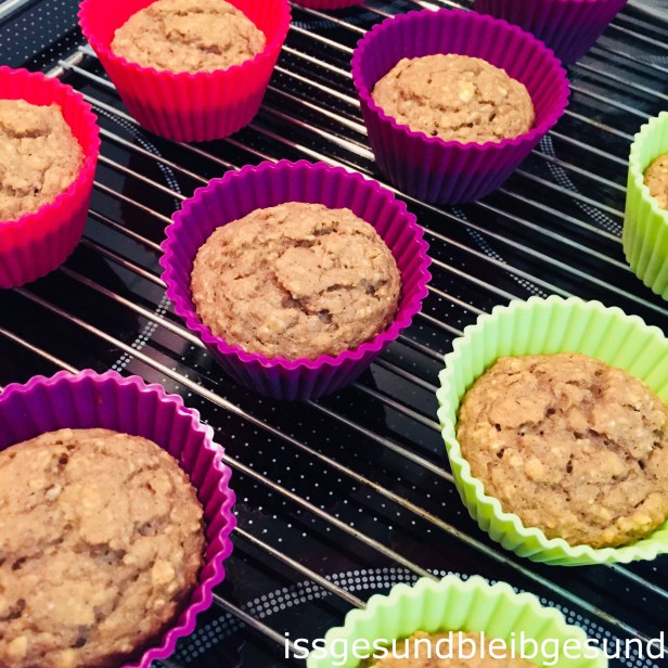 Muffinformen (am besten aus Silikon, da sie in Papierformen ev. festkleben) auf den Gitterrost stellen und den Teig in die Muffinformen füllen. 20 Minuten backen.