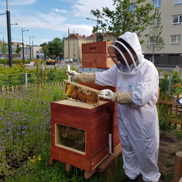 Besuch bei den Bienen im Sonnwendgarten Nachbarschaftsgarten in Wien 10