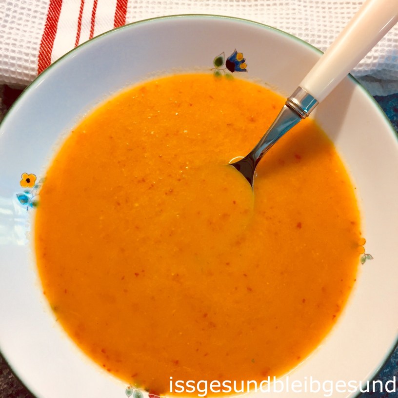 Heute gab es zu Mittag eine Suppe vom gelben und roten Paprika