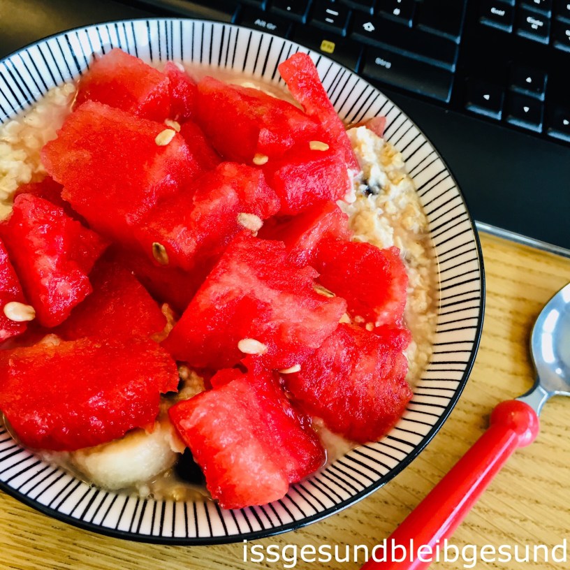 Hier ist das Rezept für meinen Wassermelonen 🍉 Porridge im Büro: