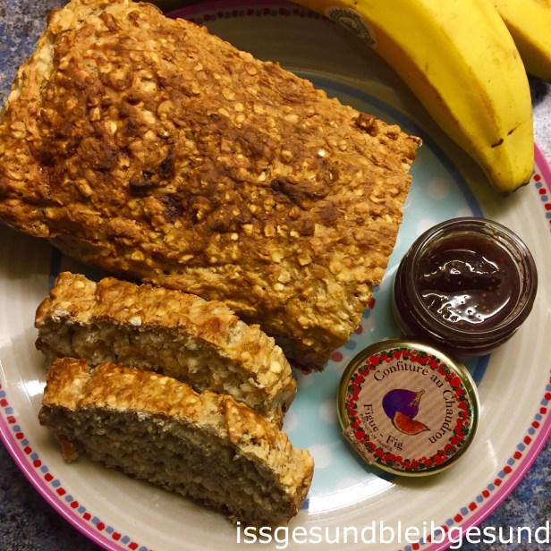 Noch schnell für das morgige Frühstück gebacken: ein veganes 🍌Mini-Bananen-Haferbrot🍌 Dazu gibt’s aus Frankreich 🇫🇷 mitgebrachte Feigenmarmelade – Confiture de figue 🇫🇷