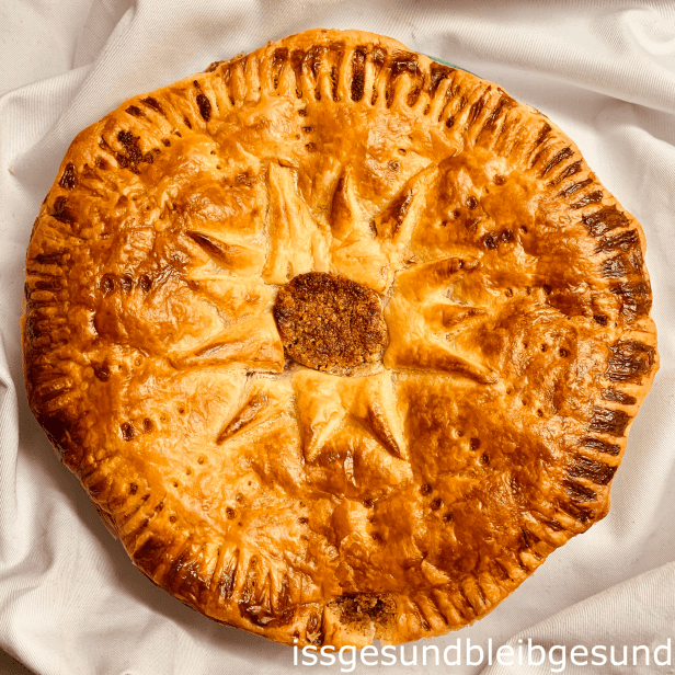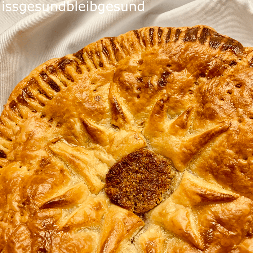 Zum Dreikönigstag (6. Jänner) gibt’s heute den veganen, industriezuckerfreien 👑Königskuchen – Galette des Rois👑 gefüllt mit süßer Mandelcreme.
