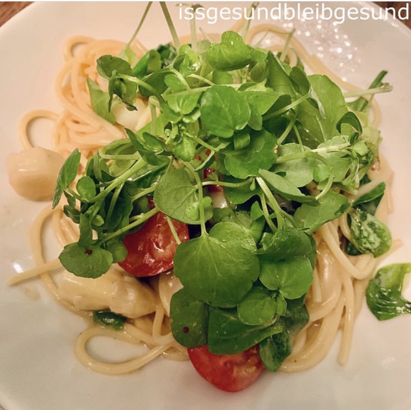 Für die Sauce röstest du 1 feingeschnittene Zwiebel und 1 zerdrückte Knoblauchzehe mit 200g kleinen Stücken vom weißen oder grünen Spargel an, dann wird das ganze mit 250 ml veganer Kochcreme z.B. Alpro Cuisine Soya [Werbung] aufgegossen und für ca. 10 Minuten eingekocht. Gegen Ende der Garzeit mischt du ein paar halbierte Cocktailtomaten und 2 Hand voll frischen Spinat darunter und würzt mit Salz und Pfeffer. In der Zwischenzeit kochst du die Pasta al dente. Zum Servieren die Sauce über die Pasta gießen und mit frischen Kräutern 🌿 dekorieren.