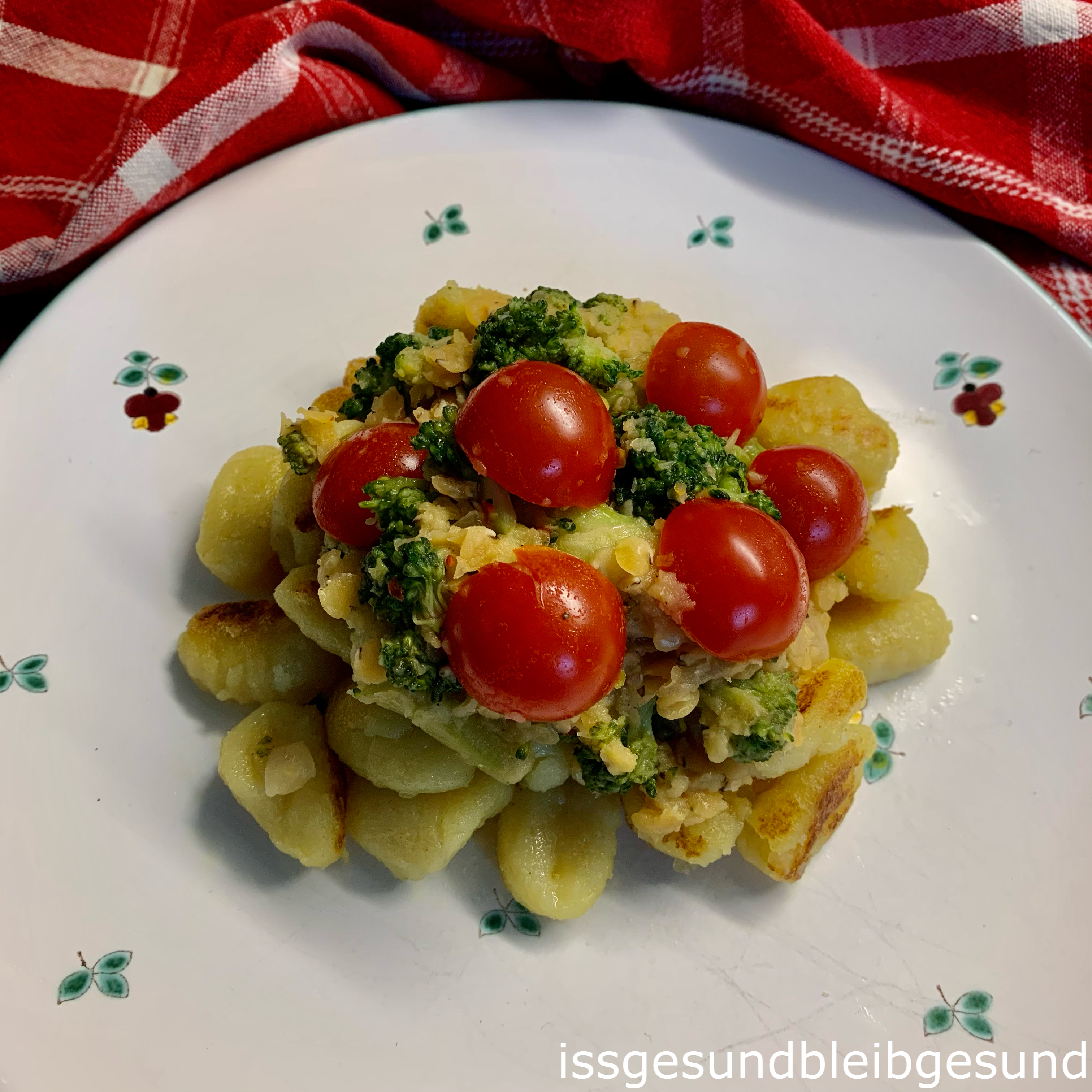 Hey Friday ☀️ Zur Einstimmung auf das Wochenende mit ein bisschen 🇮🇪 Italien-Feeling gibt’s 🍅 Brat-Gnocchi mit Linsen-Brokkoli 🥦 vegan und sooo lecker.