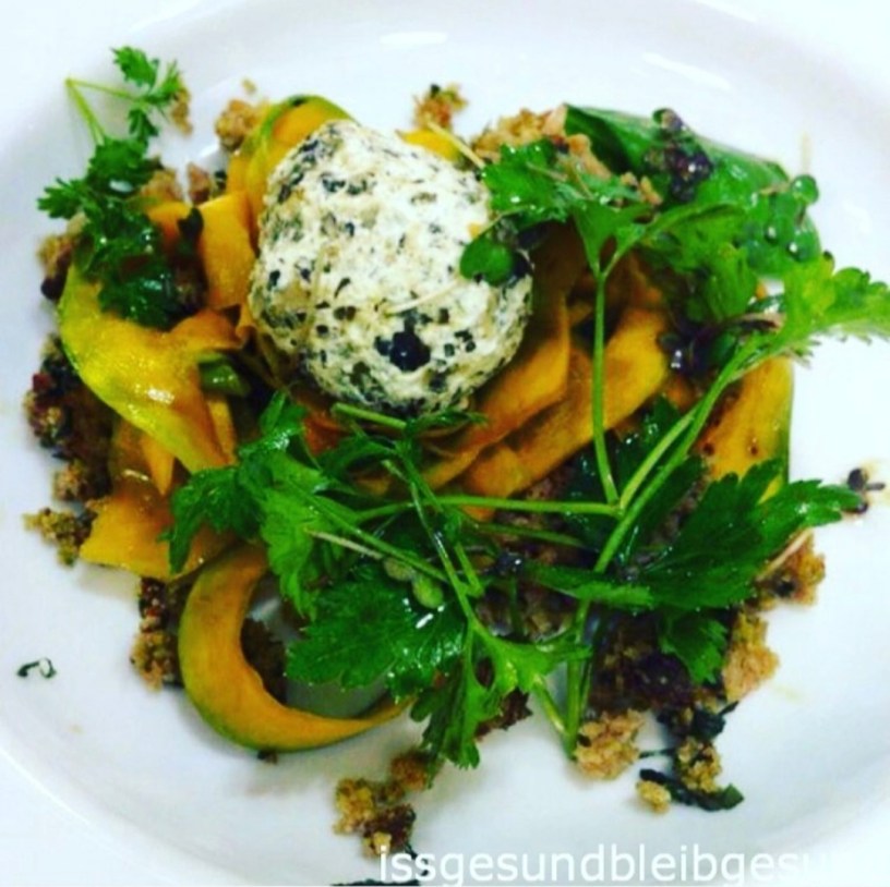 Roher Kürbis ??? werdet ihr vielleicht denken. War selbst sehr skeptisch bevor ich ihn einmal gekostet habe. Kann euch nur sagen es schmeckt köstlich mit Biss und einer süßlich, fruchtigen Note durch das Dressing mit Orange.