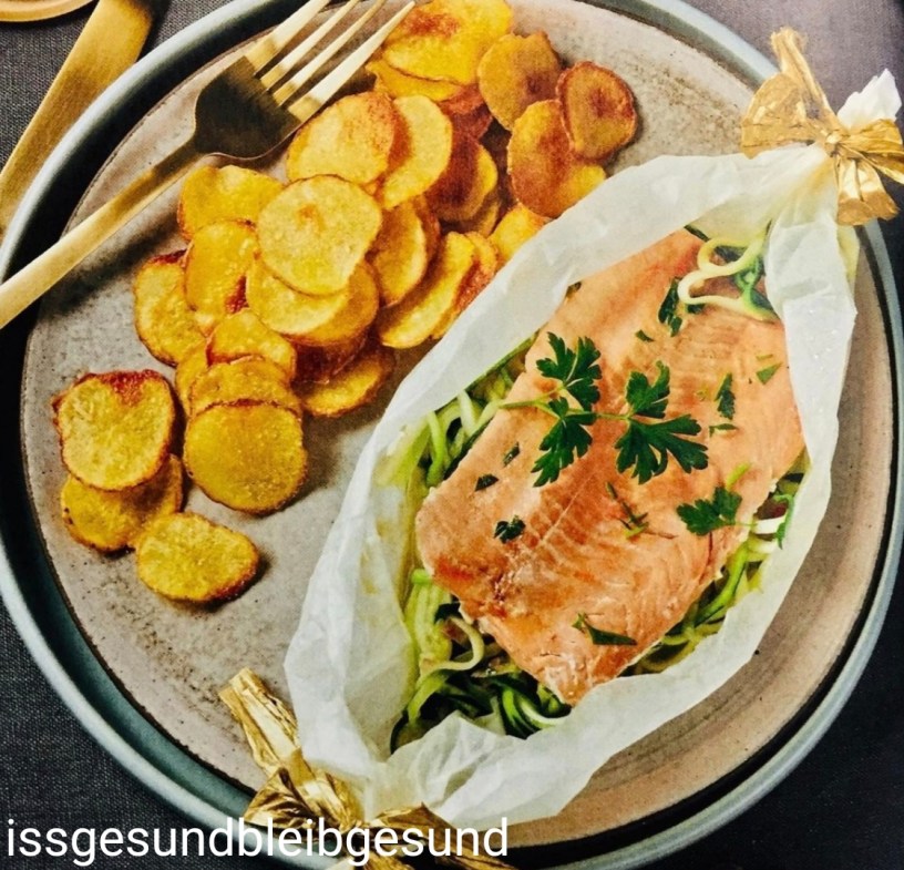 ⭐ Wildlachs auf Zoodles im Päckchen mit golden Chips