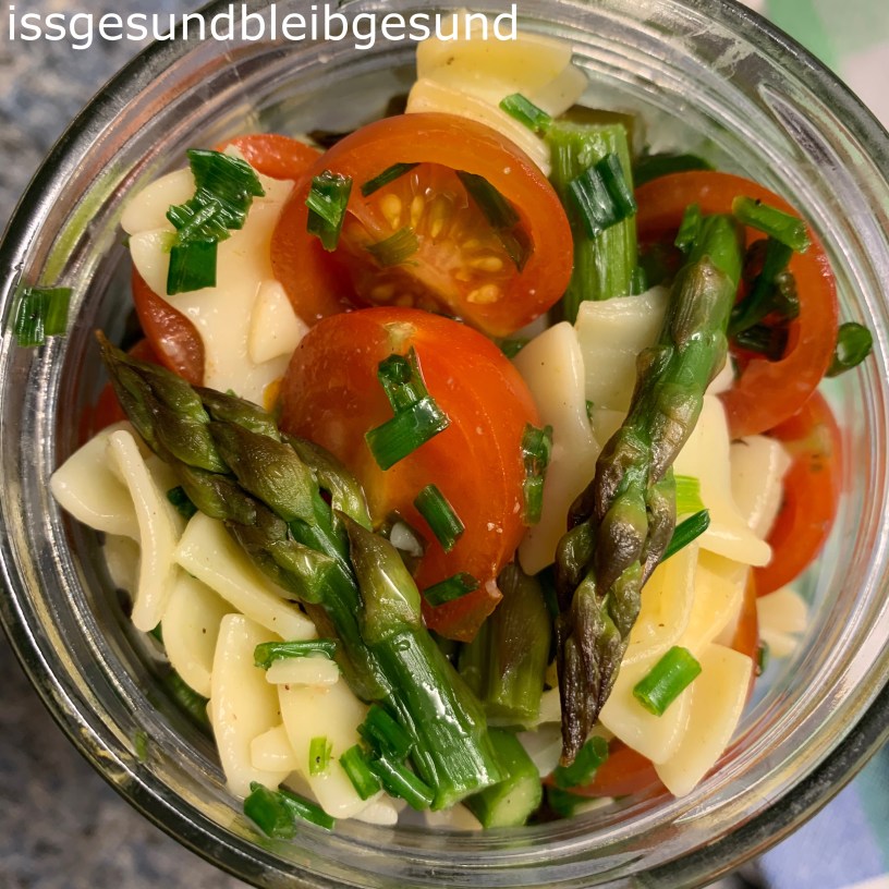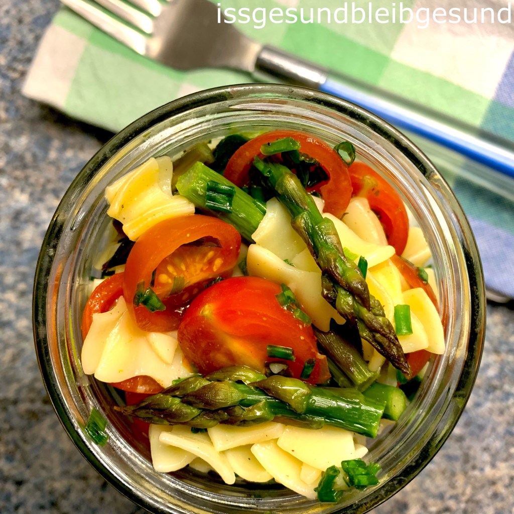💚Grünspargel-Nudelsalat 💚 im Glas, ideal als Mealprep zum Mitnehmen fürs Büro oder Picknick am Wochenende 👍 und auch ein tolles Rezept aus der Leftovers-Küche.