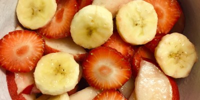 Obstsalat mit Erdbeeren, Nektarinen und Banane